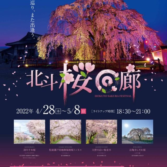 イベント 北斗桜回廊 4月28日(木)~5月8日(日) 【北斗桜回廊】をご紹介♪4月28日(木)~5月8日(日)北斗市内の桜の名所で様々なイベントが開催されます🌸 おやこ体験見る食べる 2022.04.22 おやこイベント