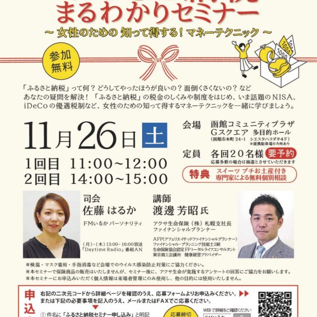 イベント ふるさと納税まるわかりセミナー ~女性のための知って得する!マネーテクニック~ 11月26日(土) 2022年11月26日(土)【ふるさと納税まるわかりセミナー ~女性のための知って得する!マネーテクニック~】が開催されます。ふるさと納税についてや、今話題のNISA・iDeCoについて女性のための知って得するマネーテクニックを一緒に学びましょう。 パパプレママママ学ぶ 2022.11.16 イベントパパプレママママ