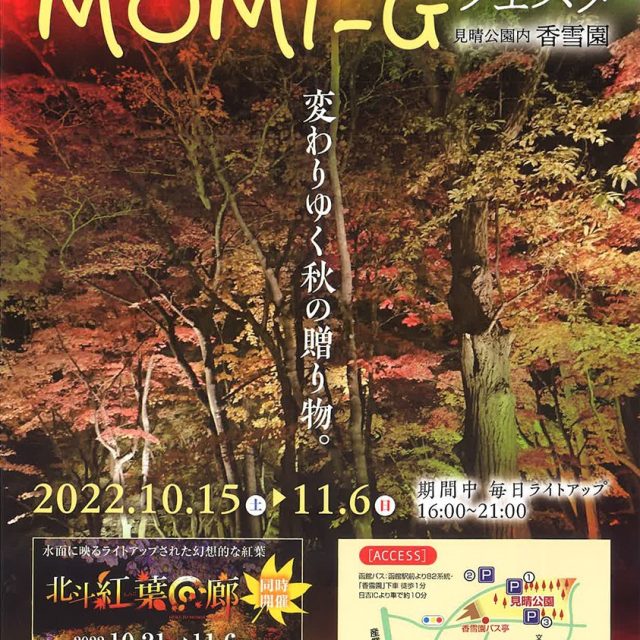 イベント はこだてMOMI-G(もみじ)フェスタ 10月15日(土)~11月6日(日) 10月15日(土)~11月6日(日)見晴公園内に香雪園で【はこだてMOMI-G(もみじ)フェスタ】開催♪ おやこ体験見る 2022.10.14 おやこイベント