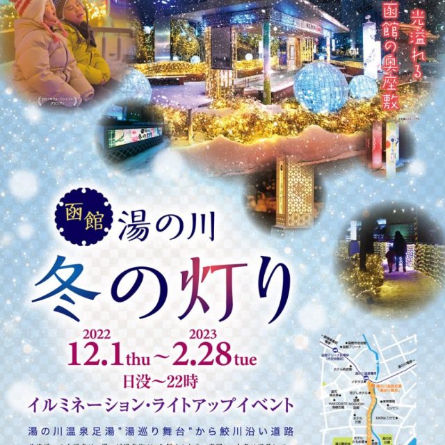 イベント 第4回 函館湯の川 冬の灯り 12月1日(木)~2月28日(火) 2022年12月1日~2023年2月28日までの3ヶ月にわたり開催される【第4回 函館湯の川 冬の灯り】足湯で温まりながらイルミネーションをお楽しみください♪ おやこ見る 2022.11.24 おやこイベント