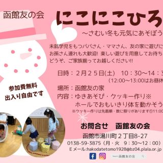 イベント にこにこひろば~さむい冬も元気にあそぼう~ 2月25日(土) 2023年2月25日(土)【にこにこひろば~さむい冬も元気にあそぼう~】楽しい遊びを用意してお待ちしております♪ご家族揃って、函館友の会に遊びにいらしてくださいね♪ おやこ体験作る 2023.02.17 おやこイベント