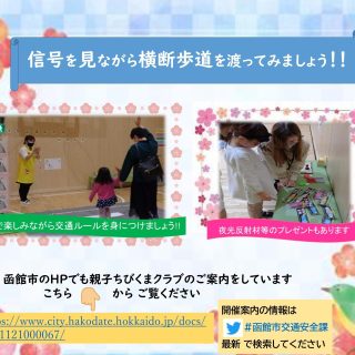 イベント 交通安全体験コーナー「親子ちびくまクラブ」 2月27日(月) 2023年2月27日(月)【交通安全体験コーナー「親子ちびくまクラブ」】が函館市亀田交流プラザで開催されます。市の交通指導員さんと一緒に幼いうちから交通ルールを楽しみながら学ぼう! おやこ体験 2023.02.20 おやこイベント