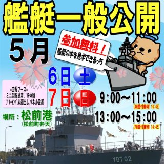 イベント 海上自衛隊 艦艇一般公開 5月6日(土)~5月7日(日) 2023年5月6日(土)7日(日)【海上自衛隊 艦艇一般公開】松前港で水中処分母船2号【YDT-02】の一般公開が実施されます! おやこ見る 2023.04.24 おやこイベント