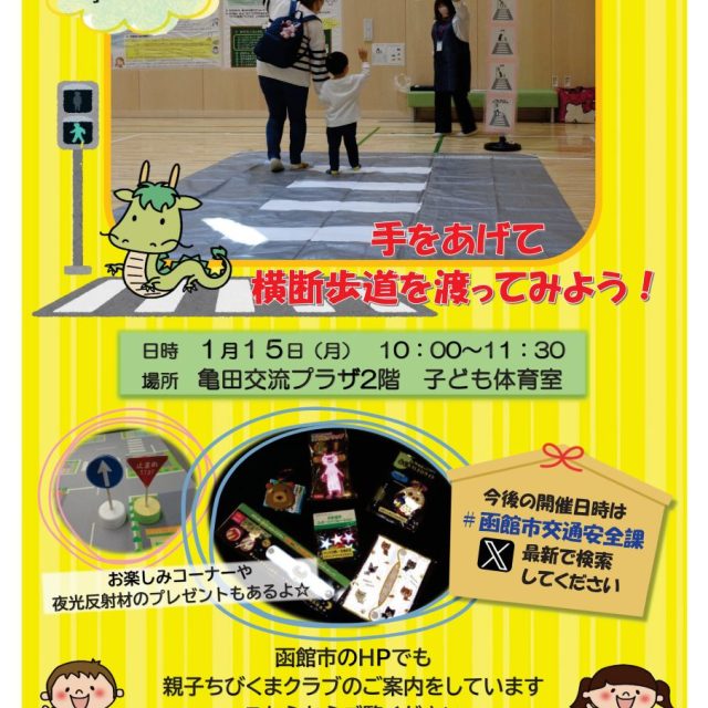 イベント 交通安全体験コーナー「親子ちびくまクラブ」 1月15日(月) 2024年1月15日(月)【交通安全体験コーナー「親子ちびくまクラブ」】親子で交通安全を学ぶ。 おやこ体験 2023.12.26 おやこイベント