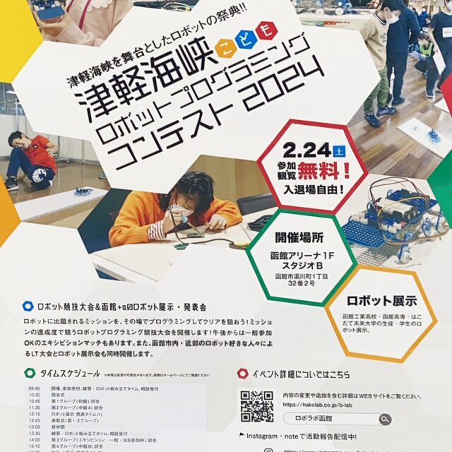イベント 津軽海峡こどもロボコンプレ大会 2月24日(土) 2024年2月24日(土)【津軽海峡こどもロボコンプレ大会】が開催されます♪用意された3種類のコースを、30分以内に指示書通りロボットがゴールできるようにプログラミングを行う競技「ロボサバ」を行います。 キッズ体験 2024.02.21 イベントキッズ