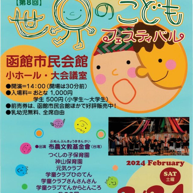 イベント 第8回 世界のこどもフェスティバル 2月24日(土) 2024年2月24日(土)【世界のこどもフェスティバル】が開催されます♪夏の人気イベント「はこだて国際民俗芸術祭」のこどもバージョンとして開催! おやこキッズ体験 2024.02.05 おやこイベントキッズ
