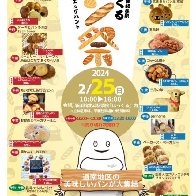 イベント ほっくるパン祭withスノーエッグハント 2月25日(日) 2024年2月25日(日)【ほっくるパン祭withスノーエッグハント】が開催されます♪ おやこショッピング体験食べる 2024.02.21 おやこイベント