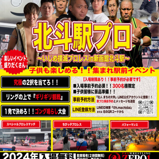 イベント 北斗駅プロ~いじめ撲滅プロレスin新函館北斗駅~ 4月13日(土) 2024年4月13日(土)【北斗駅プロ~いじめ撲滅プロレスin新函館北斗駅~】が開催されます。スペシャルプロレスマッチやちびっ子プロレス、ゴング鳴らし大会など、子どもも楽しめる楽しいイベント盛沢山です! おやこ見る 2024.04.09 おやこイベント