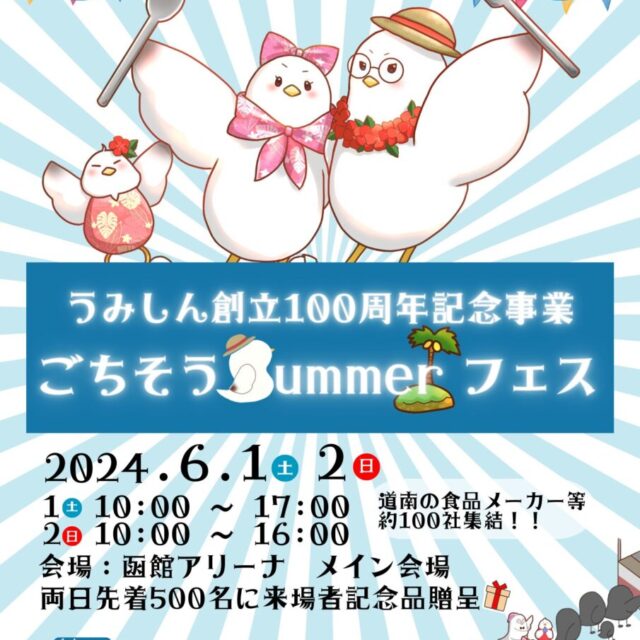 イベント 【うみしん創立100周年記念事業】ごちそうSummerフェス 6月1日(土)~6月2日(日) 2024年6月1日(土)2日(日)【うみしん創立100周年記念事業】ごちそうSummerフェス が開催されます♪道南地域の飲食店や食品メーカーなど約100社が集結! おやこショッピング見る食べる 2024.05.21 おやこイベント