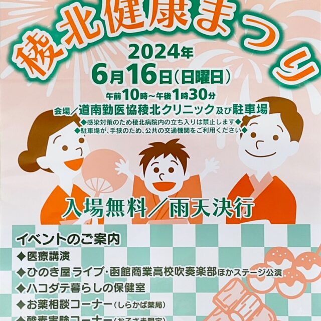 イベント 第27回 稜北健康まつり 6月16日(日) 2024年6月16日(日)【第27回 稜北健康まつり】が開催されます♪お子さま限定の「酸素実験コーナー」もあります♪ おやこ体験見る食べる 2024.06.13 おやこイベント