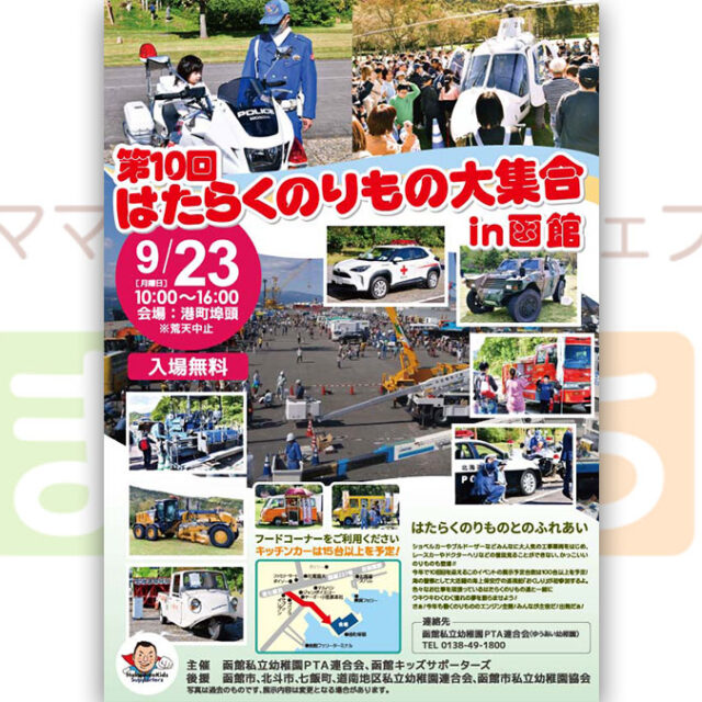 イベント 第10回 はたらくのりもの大集合 in 函館 9月23日(月) 2024年9月23日(月祝)【第10回 はたらくのりもの大集合 in 函館】が開催されます♪はたらくのりものとの触れ合いや、キッチンカーなど大人気イベントです! おやこ体験見る食べる 2024.08.29 おやこイベント
