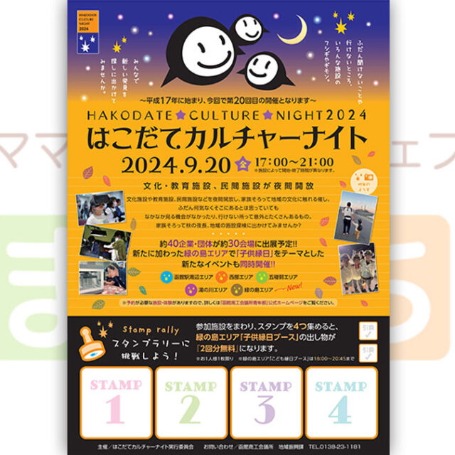 イベント はこだてカルチャーナイト2024 9月20日(金) 2024年9月20日(金)【はこだてカルチャーナイト2024】函館の文化施設や教育施設、民間施設などを夜間開放し、家族そろって地域の文化に触れる催し⭐ おやこ体験 2024.09.17 おやこイベント