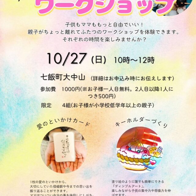 イベント 子供もママも輝くワークショップ 10月27日(日) 2,024年10月27日(日)【子供もママも輝くワークショップ】親子でそれぞれの時間を楽しむワークショップ! おやこ体験作る 2024.10.01 おやこイベント
