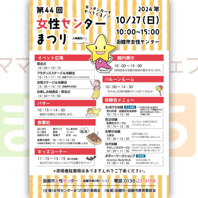 イベント 第44回 女性センターまつり 10月27日(日) 2024年10月27日(日)【第44回 女性センターまつり】が開催されます♪ おやこショッピング体験食べる 2024.10.18 おやこイベント