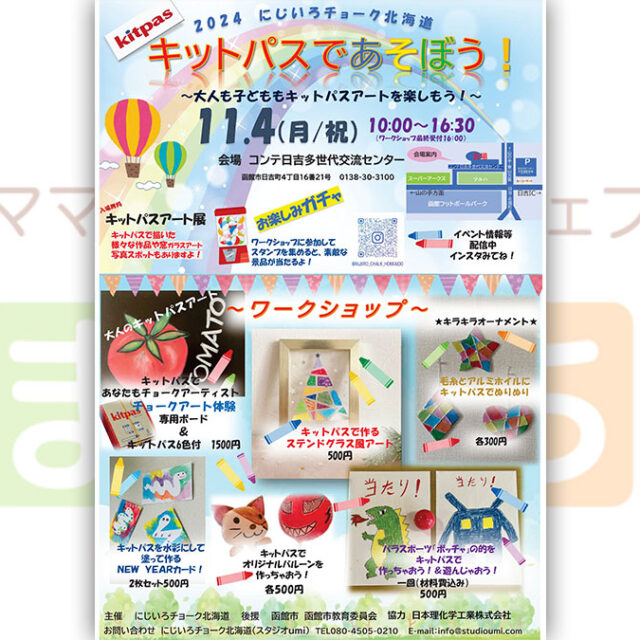 イベント キットパスであそぼう! 11月4日(月) 2024年11月4日(月祝)【キットパスであそぼう!】がコンテ日吉多世代交流センターで開催されます!窓ガラスや鏡など平滑面に描いて水で消せる絵具のキットパスを使ってアート体験してみよう! おやこ体験 2024.10.21 おやこイベント
