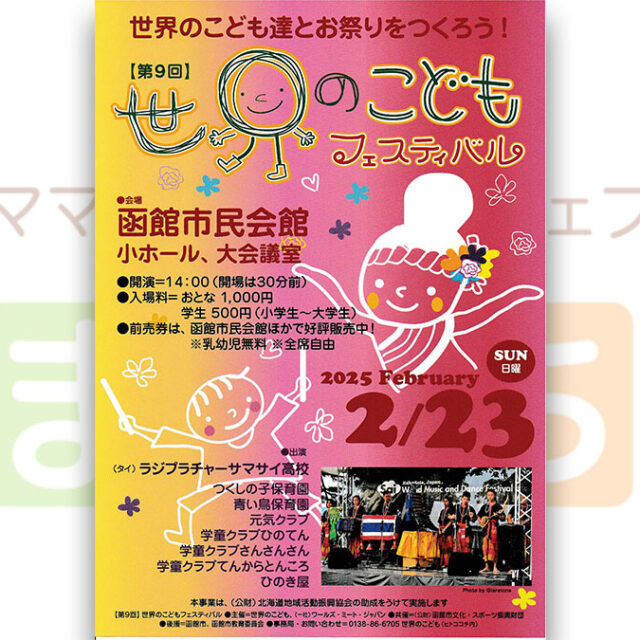 イベント 第9回 世界のこどもフェスティバル 2月23日(日) 2025年2月23日(日)【世界のこどもフェスティバル】が開催されます♪夏の人気イベント「はこだて国際民俗芸術祭」のこどもバージョンとして開催! おやこキッズ体験 2025.02.13 おやこイベントキッズ