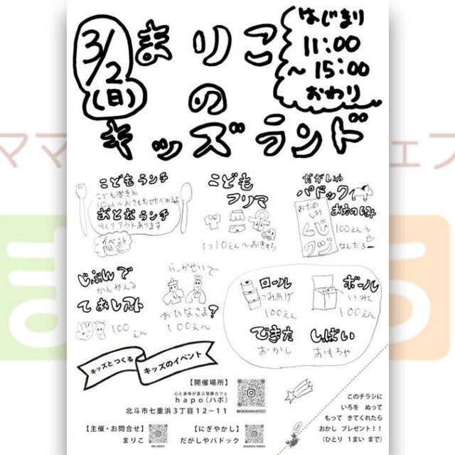 イベント まりこのキッズランド 3月2日(日) 2025年3月2日(日)【まりこのキッズランド】が開催されます♪函館市の駄菓子屋・おっとこまりこの駄菓子屋プレゼンツ&北斗市の駄菓子屋・だがしやパドックがにぎやかしのW駄菓子屋でお楽しみください♪ おやこショッピング食べる 2025.02.26 おやこイベント