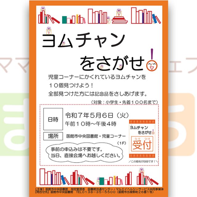 2025年5月6日(火)【ヨムチャンをさがせ!】が函館市中央図書館で開催されます♪隠れているヨムチャンを見つけよう!