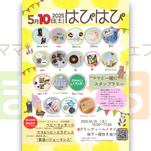 2025年5月10日(土)【はぴはぴ】が開催されます♪母の日前日🌹ママも楽しみながらプレゼントをゲットしてね!