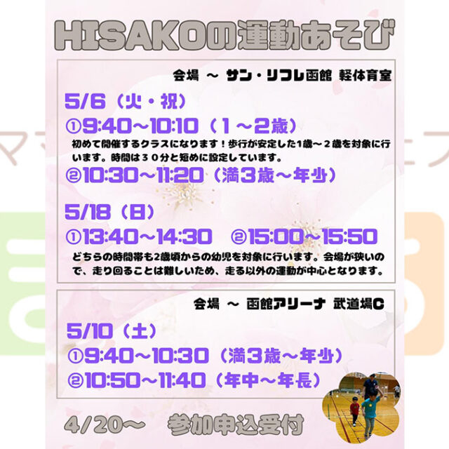 2025年5月【HISAKOの運動あそび】が開催されます♪走ったり、跳んだり、踊ったり、いろんな運動あそびを親子で楽しみましょう!