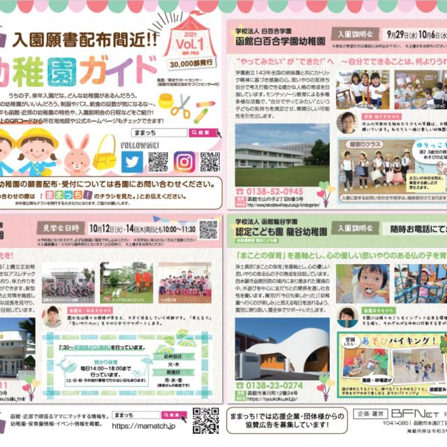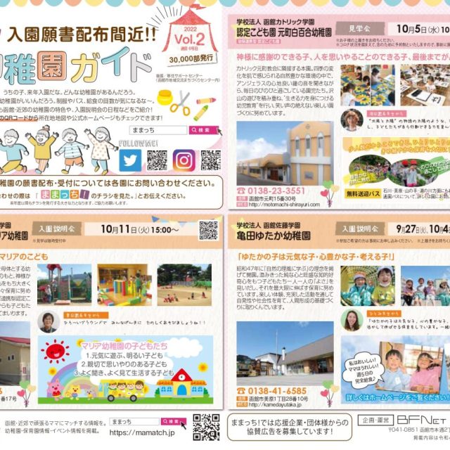 お知らせ 今年も!【幼稚園ガイドvol.1(通算5号目)】折込チラシが本日発行! 毎回大好評の【ままっち!幼稚園ガイド折込チラシvol.1(通算5号目)】が本日9月2日(金)に3万枚発行!幼稚園選びに是非ご活用くださいませ♪ 2022.09.02 お知らせ
