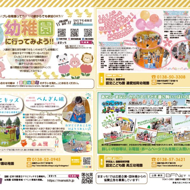 お知らせ New!未就園児特集【幼稚園に行ってみよう!!】をウェブ上でも♪ 未就園児特集♪ままっち!【幼稚園に行ってみよう!!】折込チラシをウェブ上でもご覧いただけるようにページを開設しました!是非お役立てください♪ 2022.03.04 お知らせ