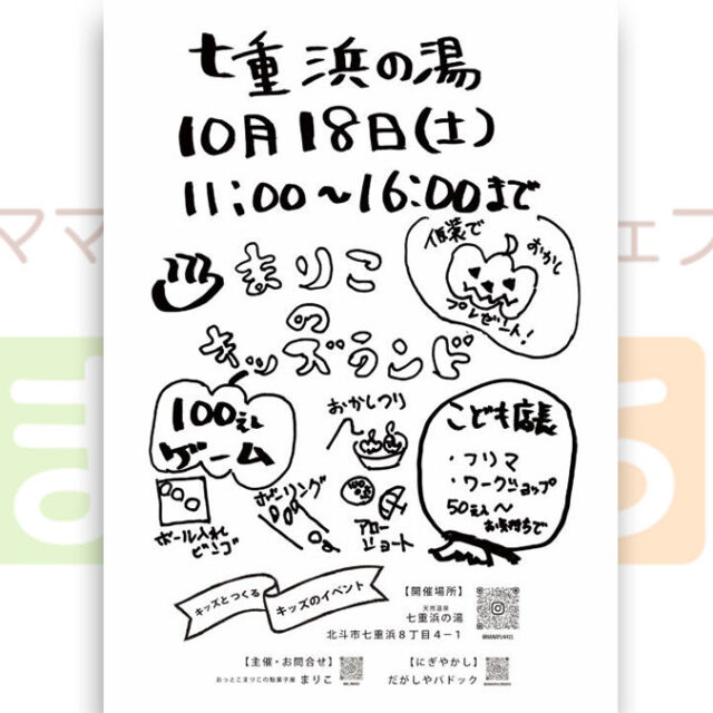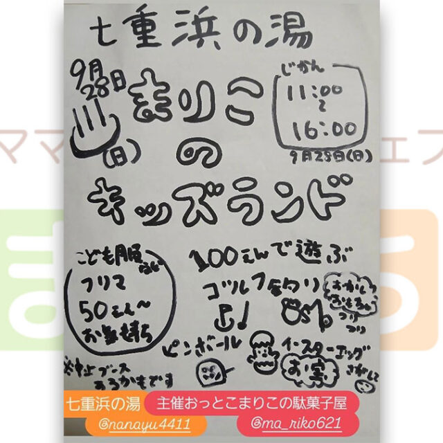 イベント まりこのキッズランド 10月18日(土) 2025年10月18日(土)【まりこのキッズランド】が天然温泉七重浜の湯で開催されます♪ おやこキッズショッピング体験遊び 2025.10.14 おやこイベントキッズ