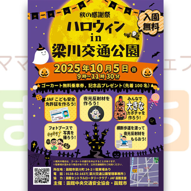 イベント ハロウィンin梁川交通公園 10月5日(日) 2025年10月5日(日)【ハロウィンin梁川交通公園】が開催されます♪みんなで大きなカボチャを作ったり、横断歩道を安全に渡って夜光反射材をもらおう♪ おやこキッズ体験作る 2025.09.26 おやこイベントキッズ