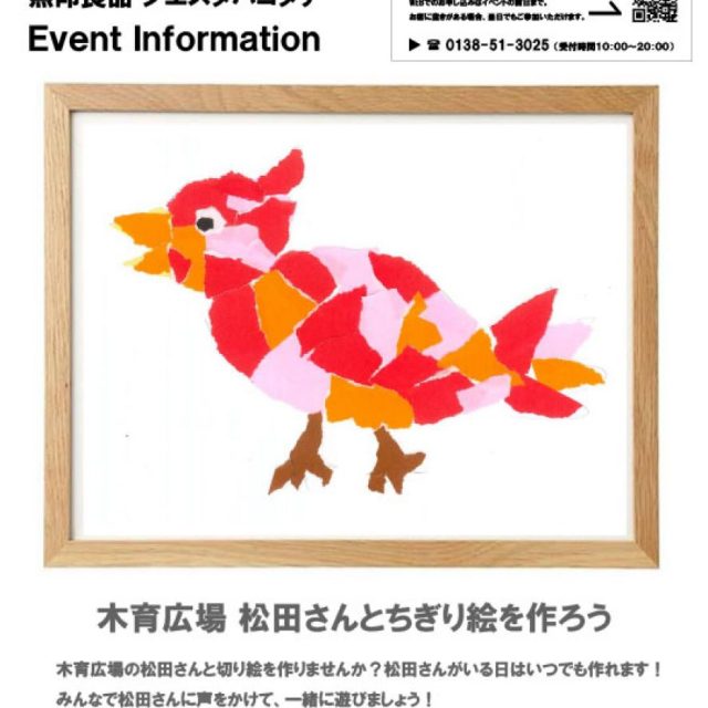 イベント 無印良品 木育広場の松田さんとちぎり絵を作ろう 6月7日(日) 無印良品シエスタハコダテ2Fの木育広場で開催のちぎり絵作りのイベントが再開です♪ キッズ作る 2020.06.05 イベントキッズ