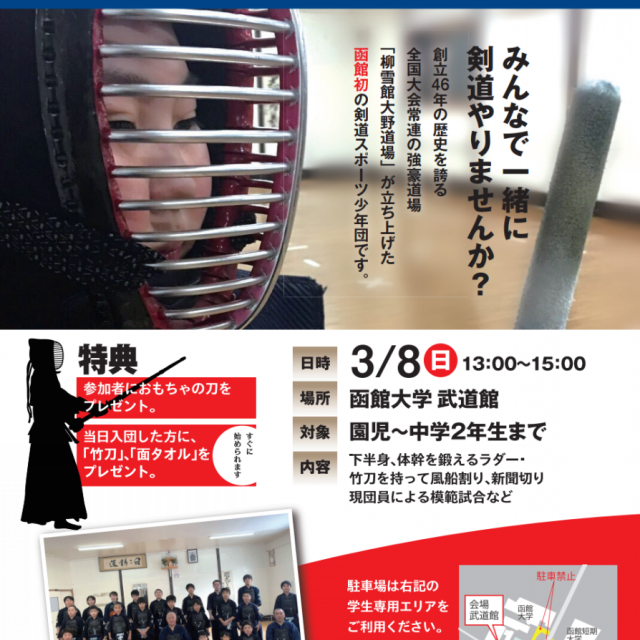 (イベント情報)3月8日(日)「剣道1日体験教室」お子さんの習い事を考えている方は是非ご参加ください♪