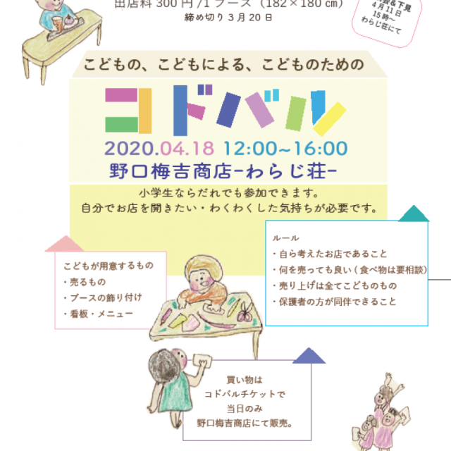 (イベント情報)4月18日(土)「コドバル」小学生による出店体験です♪