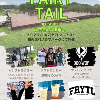 イベント 【八雲町】FAIRY TAIL presents 秋のDANCE祭り 10月7日(土) 2023年10月7日(土)【FAIRY TAIL presents 秋のDANCE祭り】FAIRY TAIL、ゲストダンサーによるパフォーマンス💃ラップバトル🎤 おやこ見る 2023.09.26 おやこイベント