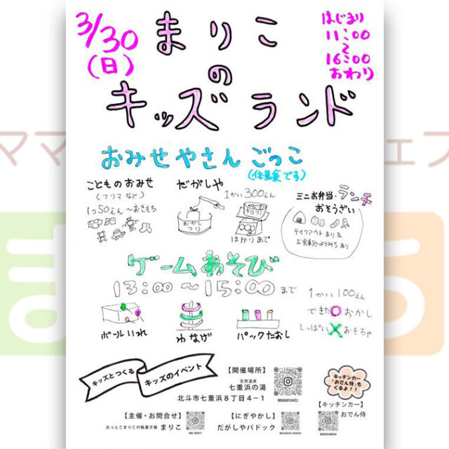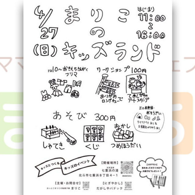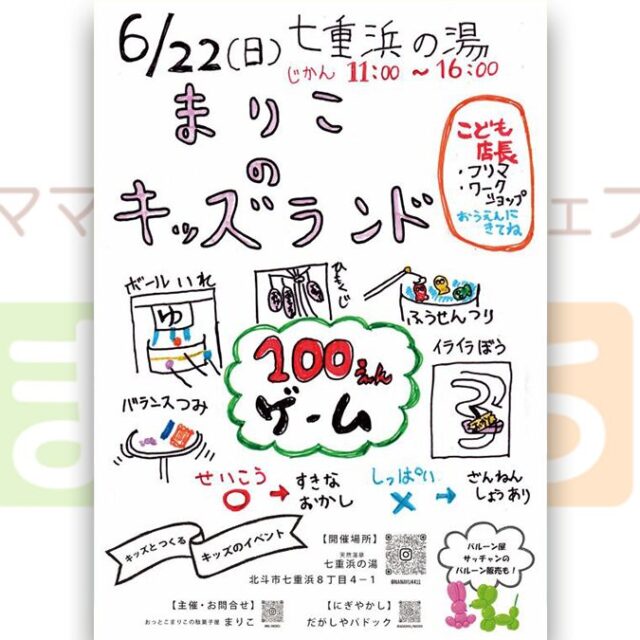 イベント 第8回目七重浜の湯 まりこのキッズランド 11月23日(日) 2025年11月23日(日)【まりこのキッズランド】が天然温泉七重浜の湯で開催されます♪ おやこキッズショッピング体験遊び 2025.11.21 おやこイベントキッズ