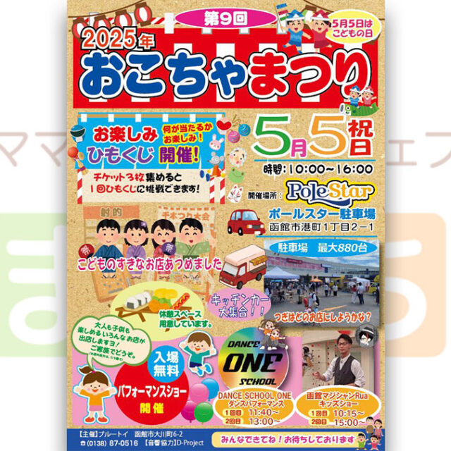 イベント 第9回 夏のおこちゃまつり in PoleStar 5月5日(月) 2025年5月5日(日・祝)【第9回 夏のおこちゃまつり in PoleStar】が開催されます♪子どもが好きなお店ばかり♪ おやこショッピング遊び食べる 2025.04.22 おやこイベント