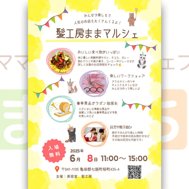 イベント 髪工房ままマルシェ 6月8日(日) 開催場所 美容室 髪工房七飯店(七飯町桜町435-4) 「子育て中のママたちが、ホッとできる時間と安心してひと息つける場所を」子育ての悩みを相談する機会、ママ友との出会い、地域活性化、素敵なお店との出会い、ママではなくても全ての方が楽し... おやこショッピング体験遊び食べる 2025.06.05 おやこイベント
