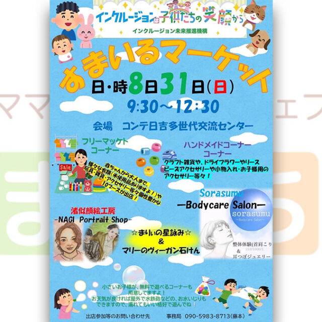イベント 【コンテ日吉】すまいるマーケット 8月31日(日) 2025年8月31日(日)【コンテ日吉 すまいるマーケット】が開催されます♪フリーマーケットやワークショップ、天気が良ければ屋外で水鉄砲あそびなども♪ おやこショッピング体験遊び 2025.08.13 おやこイベント