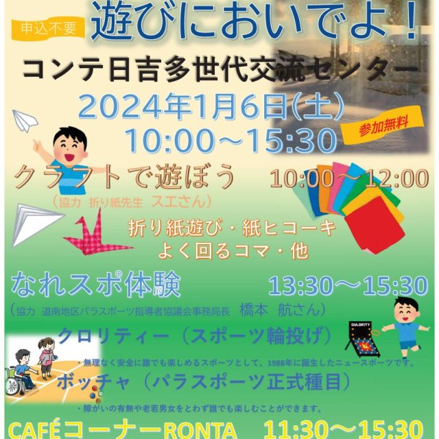 イベント 【コンテ日吉】みんなで遊びにおいでよ! 1月6日(土) 2024年1月6日(土)【みんなで遊びにおいでよ!】がコンテ日吉で開催されます♪折り紙遊びやスポーツ輪投げなどをしてみんなで遊ぼう♪ おやこキッズ体験遊び 2023.12.27 おやこイベントキッズ