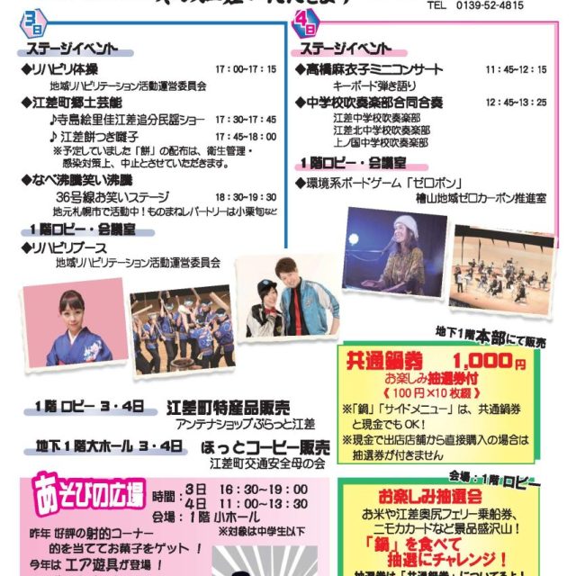 イベント 第24回 冬江差“美味百彩”なべまつり 2月3日(土)~2月4日(日) 2024年2月3日(土)4日(日)【第24回 冬江差“美味百彩”なべまつり】が開催されます♪バラエティー豊かな創作鍋と江差自慢の鍋を堪能できるイベントです。 おやこ遊び食べる 2024.01.29 おやこイベント