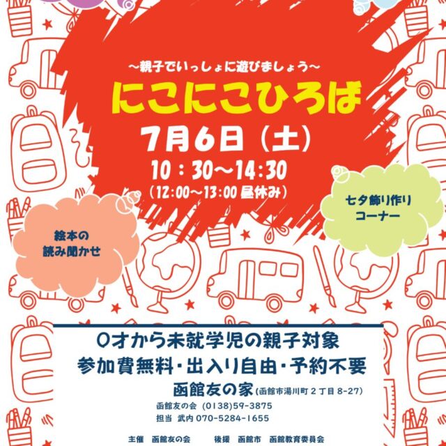 イベント にこにこひろば~親子でいっしょに遊びましょう~ 7月6日(土) 2022年7月6日(土)【にこにこひろば~つくってああそぼう~】楽しい遊びを用意してお待ちしております♪ご家族揃って、函館友の会に遊びにいらしてくださいね♪ おやこ体験作る遊び 2024.06.13 おやこイベント